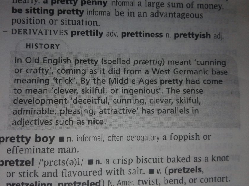 By the Middle Ages, pretty had come to mean ‘clever, skilful, or ingenuious’.