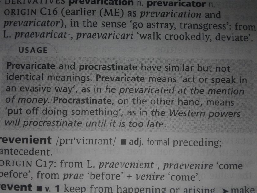 Pretty is prevarication to gain? [Prevaricate and procrastinate have similar but not identical meanings.